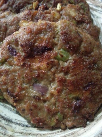 4、锅里放橄榄油,做好的牛肉饼下锅煎至两面金黄即可出锅。