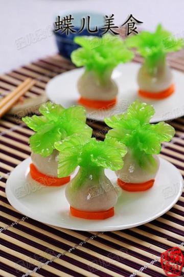 第一种:面食菜谱水晶象形白菜蒸饺做法