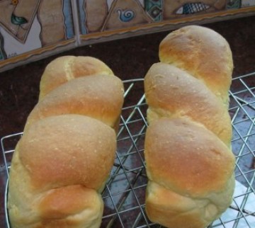 牛奶1杯,橄榄油3大匙,盐0.25,糖1小匙,干酵母1.5小匙,玉面粉0.25,白面2.25杯