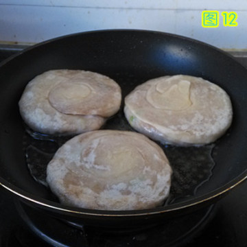 9、锅中倒入适量的油,预热后,放入擀好的饼,双面煎熟即可。