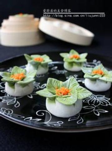 第一种:面食菜谱翡翠花朵蒸饺做法