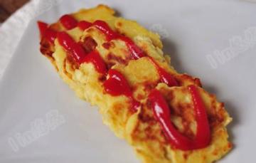 6、摊成小饼,用电饼铛烙熟,挤番茄酱装饰即可;
