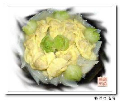 2、冬瓜雕刻成形,用鸡汤调入味,装入煨制好的龟裙,淋上鲍汁即成。