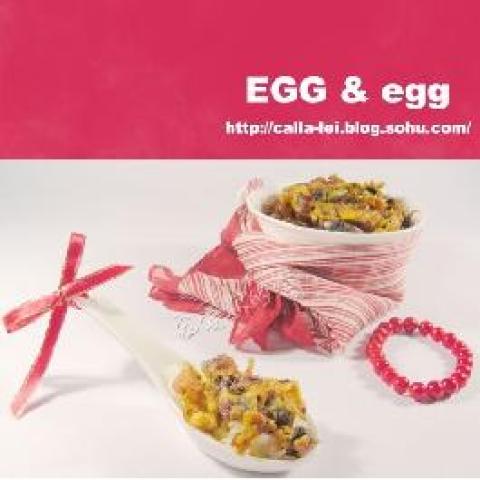 4.油烧热,把蛋液倒入煎熟,盛出。