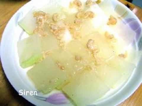 3.虾米用少量油爆炒一下,调味勾芡,淋在冬瓜上即可。