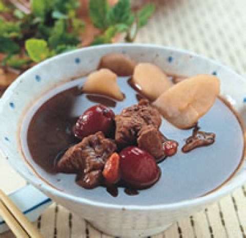 2. 排骨汆烫,放入锅内加仙草茶煮至沸腾,放入红枣、山药、熟地、枸杞,一同炖煮1小时后加入盐、米酒调味即可。