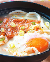 2.将乌龙面放入作法1的锅中以大火煮熟。