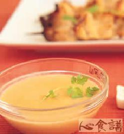 (6)把其余之沙嗲酱加热,淋在鸡肉串上一起食用即可。