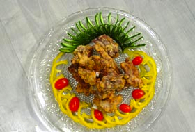 ◇这是一道典型的“清炸”菜品,即食材不需上浆挂糊,用调味料腌渍后直接用旺火加热油炸,这种烹调方法的关键是油量要充足,是食材的3~4倍为佳。油量大能产生较大的浮力和热量,并且使食材受热均匀、避免食材相互粘连、过早沉底而粘锅。也可以把羊排在腌渍前稍微用刀拍拍松。
