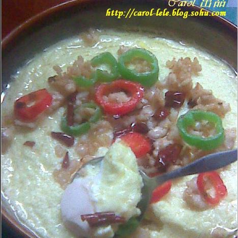 用匙子挖起来,上面金灿灿,下面白花花,再加上红红的辣椒油,味道鲜美啊