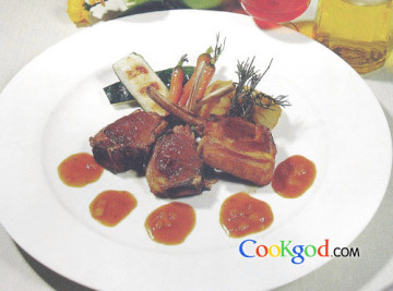 第一种:大菜菜谱香草羊排配干葱汁做法