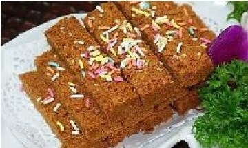 4、上面再撒上芝麻、朱古力针。用重物紧压2小时;