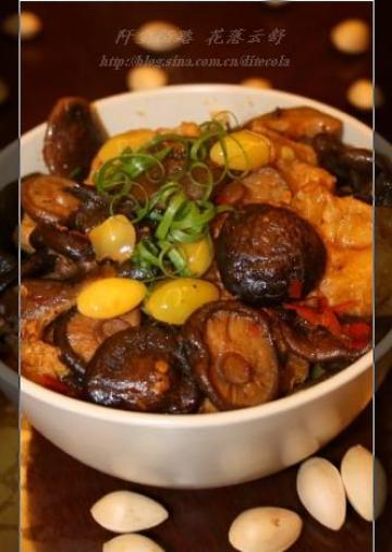 3,将家常豆腐,香菇,木耳,白果全部放入锅中,一次加齐所有调料,用中小火煮10分钟,关火。