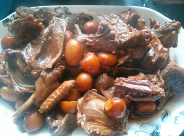 第一种:凤眼果蘑菇焖鸭菜谱,凤眼果菱角红焖肉做法