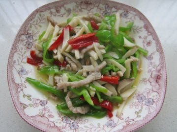 第五种:家常菜菜谱杏鲍菇辣椒肉丝做法