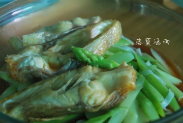 【食材】彩云雕 1条/ 生姜 2片/芦笋 8根/ 线面1 指/生抽 适量/蜂蜜 1小勺