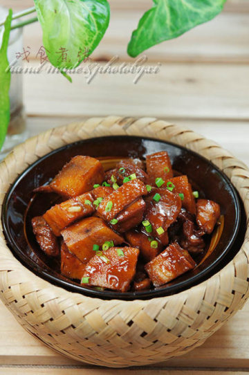 6、最后调成大火,加入生抽、海鲜酱和冰糖,收干汁即可。