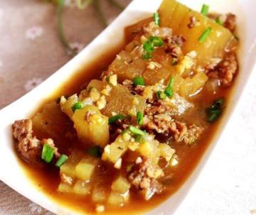 第一种:肉末冬瓜菜谱,香葱肉末焖冬瓜片做法