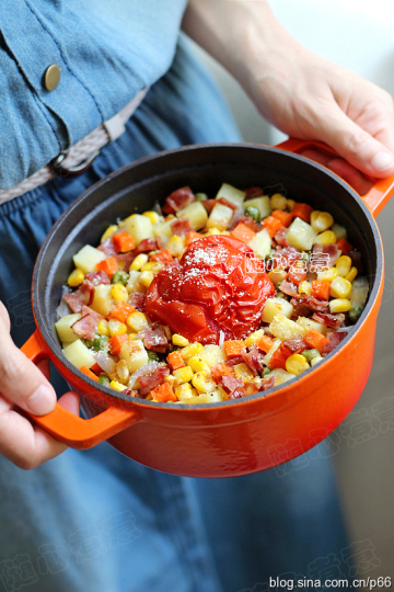 **如果没有那么多材料,也可以做得简单一些,少其中哪样都可以。但是香肠最好不要少。香肠和培根是我喜欢的食材,你也可以根据喜好加入海鲜和其它肉类进去,做出适合自己口味的番茄饭哦。