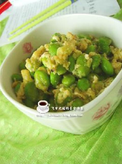 1:将毛豆洗干净,锅中水开加一小勺盐,倒入毛豆煮3到4分钟后捞起待用。鸡蛋加少许盐打成蛋液待用。2:锅热,倒入油烧热,加些姜丝爆香一下,然后下入毛豆加盐翻炒一下3:倒入蛋液,等蛋液凝固的时候翻炒几下就可以起锅了。