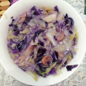 第一种:蛋炒紫甘蓝菜谱,香肠炒卷心菜做法
