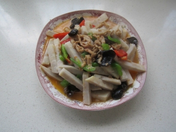6.最后加入炒好的肉丝,翻炒半到一分钟,就好啦。