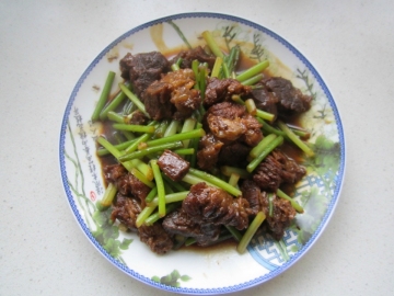 第一种:家常菜菜谱,牛肉蒜芯做法
