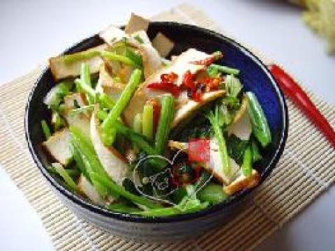 鲜嫩爽口,清香开胃。香干焯水后一定要用冷开水冲凉,否则口感不好。