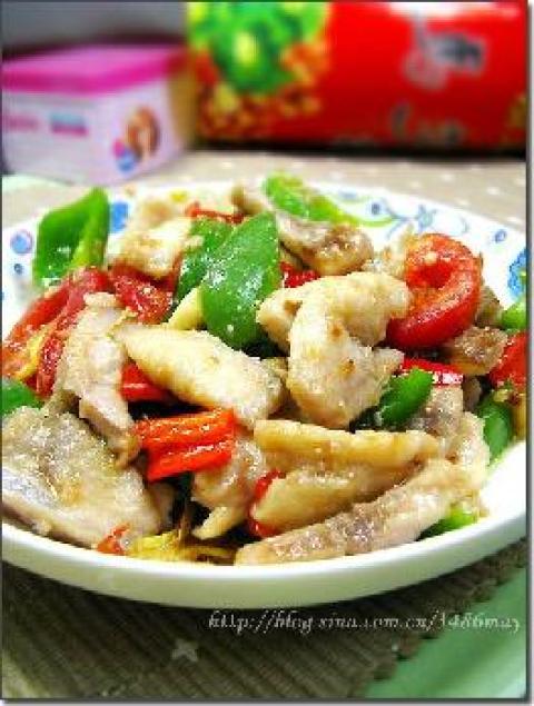 3.坐锅烧油下剁辣椒呛香,下五花肉滑炒变色盛出~