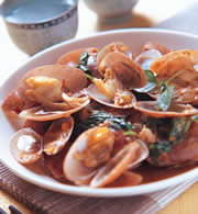 海瓜子300g,蒜末1大匙,姜片2片,红辣椒1/2条,九层塔10g,水2大匙,酱油1大匙,糖1大匙,米酒2大匙
