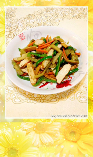 1.炒的时候大火热油(干张吃油,可稍稍多放些油),先爆香少许蒜蓉。