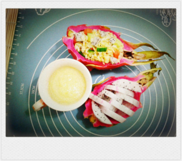 火龙果0.5个,鸡蛋芒果2个,青柠沙拉酱