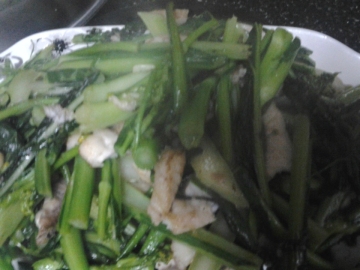 香菇炒莴笋、爆炒肥肠、尖椒炒牛肚。