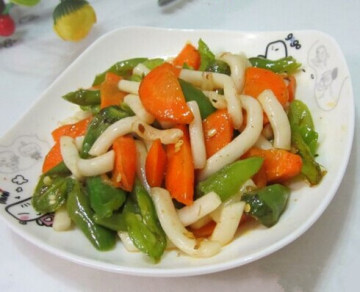 1.千张切丝,红萝卜切丝,蒜苗切段,辣椒切丝,青菜适量
