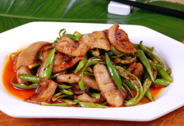 蒜苔炒鸡蛋、腐乳炒通菜、西芹炒肉片、黄花香炒裙边、竹笋炒肉