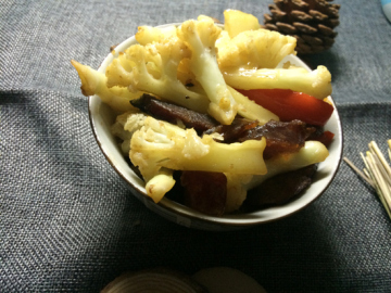 腊肉100克,核桃花(色泽乌黑,有清香味)150克,青、红椒各30克。调料色拉油50克,盐8克,味精8克(此处不能用鸡精,会破坏核桃花和腊肉的本味),糖5克。