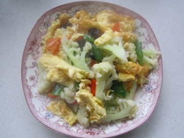 第二种:炒菜菜谱花菜鸡菇虾做法