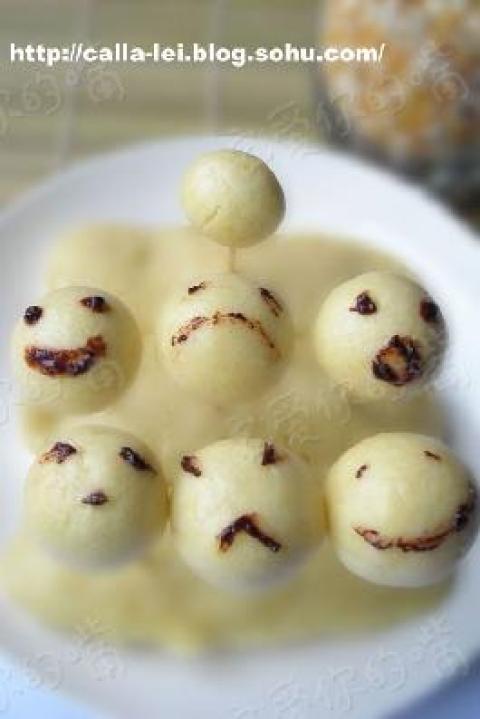 6.用牙签蘸巧克力液给一个个小蒸糕团,画上表情。还有一张是空白的,是特地留给你的。你会怎么画?一种表情,一种心态;一种心态,一种生活。……