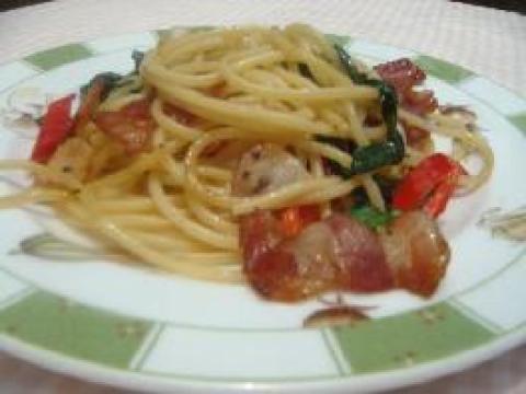 第五种:面食菜谱蒜香九层塔培根义大利辣面做法