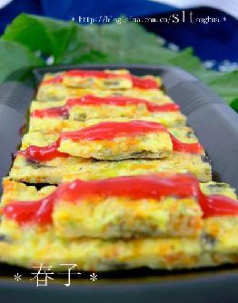 酸酸甜甜的番茄沙司南瓜花饼完成啦。