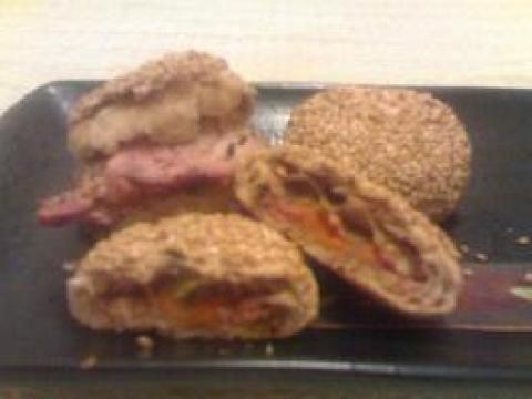 原料:,自发粉,五香粉,芝麻酱,盐,花生油,馅料:,胡萝卜,火腿,葱花,盐,油
