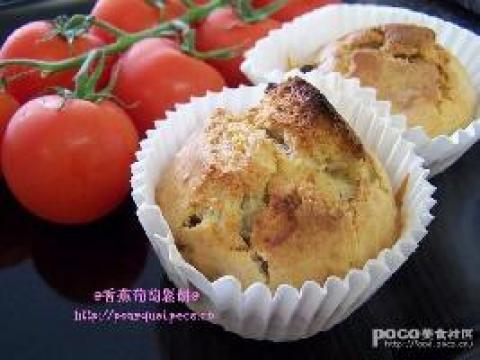 1.香蕉两根压烂加小鸡蛋一个打匀再加鲜奶90ml和糖60ml的杯一杯调匀,低粉一杯和泡打粉半茶匙过筛后加入调成面糊,