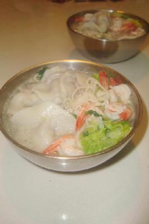 水饺,面,白菜,虾,高汤