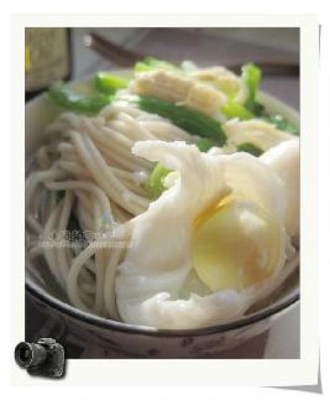 2.煮锅内烧水,把熟鸡丝下入,水开后打入鹌鹑蛋,蛋成型后把面放入煮熟,出锅前加盐和香油。