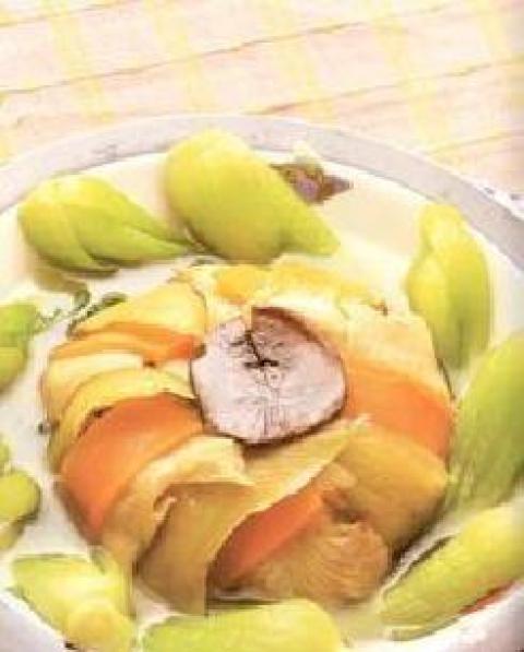 3、最后将蒸汁煮开,并且勾芡、加入香油,淋于做法(2)上即可。