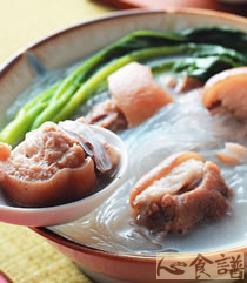 蹄膀1/2个,葱1/2根,老姜片20公克,粉丝2把,芥兰菜30公克,水600cc,盐1茶匙