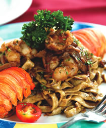 鲜虾海鲜千层面、茄汁龙虾义大利面、南瓜鲜虾面、茄汁芦笋鲜虾干贝义大利面、土司煎饼