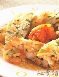 土司3片,中筋面粉100公克,虾仁70公克,韭菜50公克,高丽菜50公克,红萝卜丝20公克,水150㏄,沙拉油3大匙,盐1/2茶匙,韩式泡菜80公克