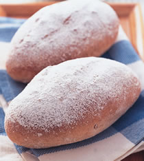 8.将作法7取出,将表面均匀撒上杂粮粉,再以割刀在顶端划出2条刀纹,移入预热好的烤箱中,以上火210℃、下火180℃烘烤约25分钟即可。