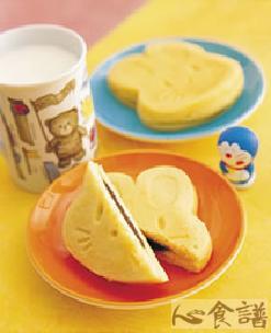 (5)烤模再刷上少许沙拉油,倒入另1匙的面煳,依作法(4)再烤5分钟,此时即可填入适量馅料,并将先前烤好的烧饼盖上,一起烤约5分钟,至两片烧饼黏合且表面呈金黄色即可脱模取出。
